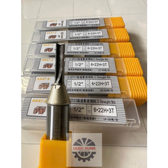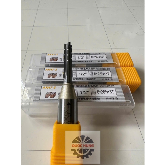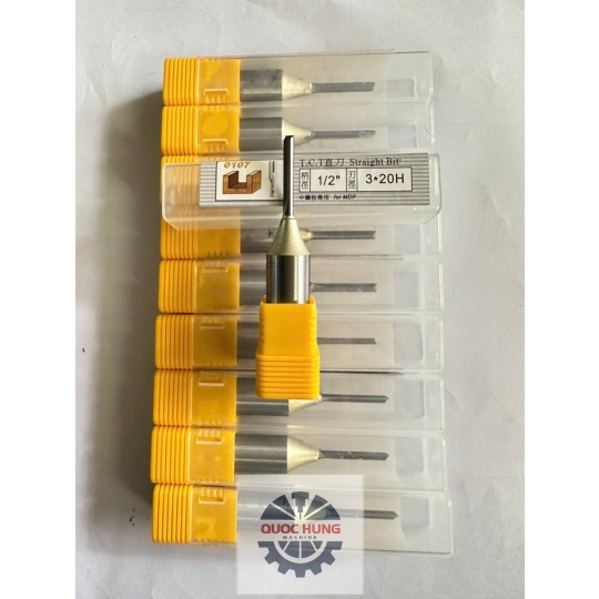 + Dao phay CNC lắp trên máy CNC để cắt hình trên gỗ, nhựa hoặc lắp trên máy soi trục đứng hoặc máy soi cầm tay để làm mộng mòi âm, lấy nền