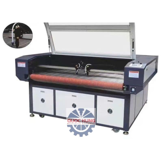 Máy cắt laser 1610 2 đầu bàn cuộn là máy có thể cắt được nhiều loại vật liệu khác nhau như da, vải, mica,...